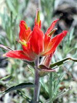 Description: This family of plants that adds beauty to the southwest is really sneaky. The actual flower is the yellow-green spike at the top of all that red. The 200-plus species of paintbrushes range from white to yellow to pink to rose but in all cases, what appears to be petals are actually bracts. Blooms and colored bracts appear from late spring through fall on stems 1 to 2 feet tall. The glowing appearance of the red bracts is due to shiny hairs. Leaves are also hairy, giving them a gray-green look. Not only does paintbrush lie about its flower color, it also is a parasite, extending tubes into the roots of other plants such as sagebrush, oaks, and grasses.
