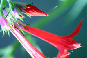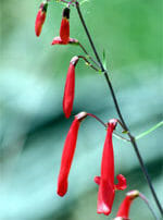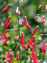 Description: A member of the snapdragon family, these bright scarlet, tubular flowers are a beautiful sight in mid to late summer. Also known as Scarlet Penstemon, Beardtongue, and Red Penstemon, the plant was named for its five stamens, one of which is a naked or infertile stamen that is bearded. Perhaps the most visible of the hundred species of penstemons in the southwest, Firecracker Penstemon often is confused with Scarlet Gilia, also popular with hummingbirds. Stems are up to three feet tall; blossoms are up to 1 1/2 inches long and appear mid to late summer.